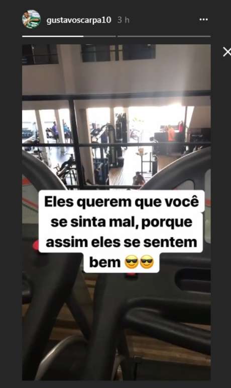 "Eles querem que você se sinta mal, porque assim eles se sentem bem", escreveu o jogador, junto ao vídeo postado em uma de suas redes sociais, nesta terça-feira, enquanto frequentava uma academia particular na cidade de Hortolândia-SP, onde moram seus familiares.